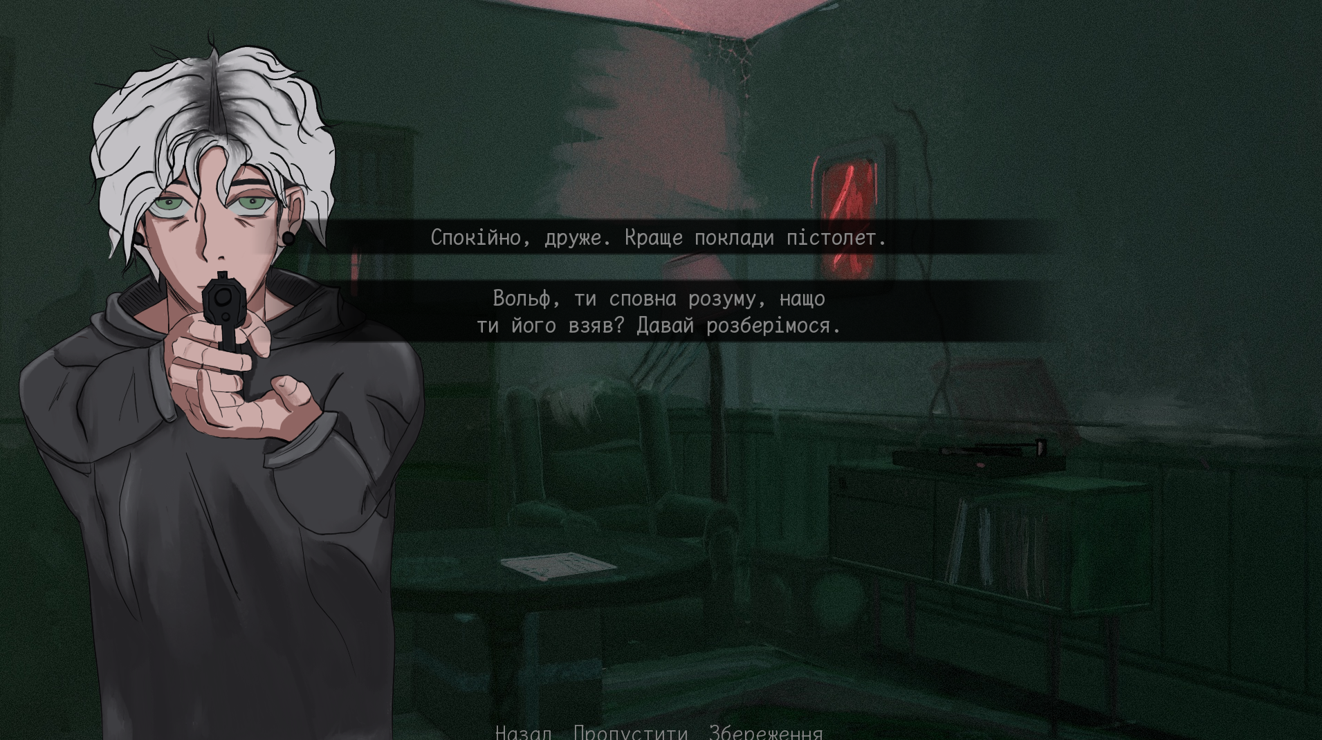 По запуску мене зустрічає миле мінімаліастичне меню і приємна музика. Вона чудово передає настрій всієї історії, створює такий затишно-вбивчий вайб. Наче й ми в біді і хтось має вмерти, але музика тобі каже: хай там як, усе буде добре.